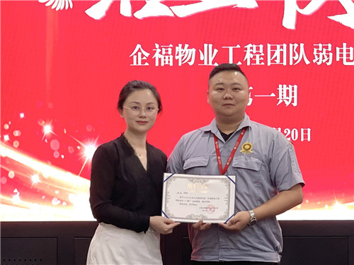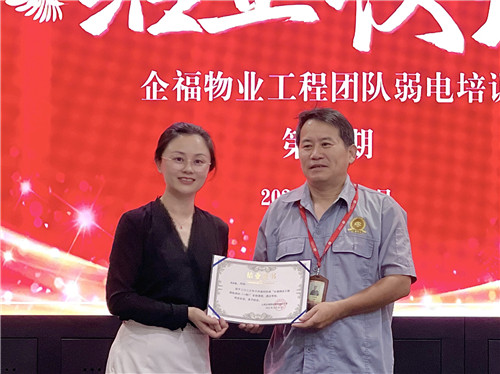 企福物業(yè)公司總經(jīng)理周英為通過考核人員頒發(fā)《結(jié)業(yè)證書》