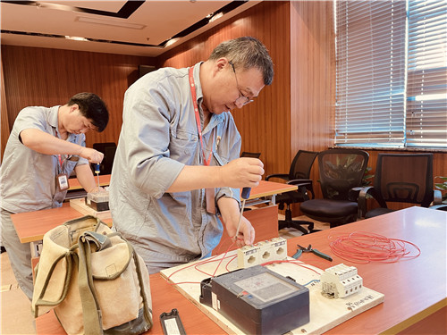 7月12日,企福物業組織開展了工程人員專業水平等級評定實操考試(自評),近30位企福物業工程人員參加。本次實操考試主要內容為互感器電表接線及雙聯開關控制燈接線。