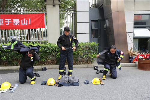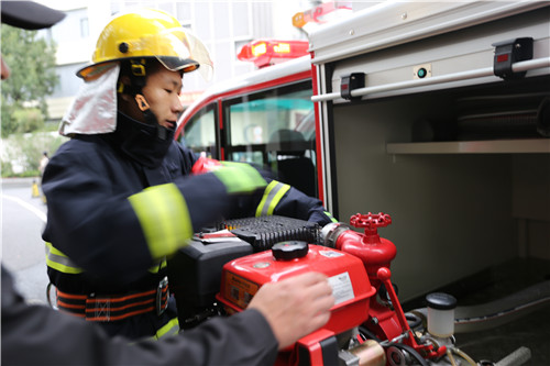 在演練開始前,企福物業安全經理喻善偉以實際案例講解了注重消防安全的重要性。在生活中,因為忽視消防安全引起的火災事件不在少數,開展消防宣傳是十分必要的。同時,喻經理針對不同燃燒物講解了滅火操作的關鍵步驟和細節,并指導在場企業員工模擬實戰滅火演練。園區微型消防站的消防人員則進行了著裝備出水演練,整個演練過程有條不紊進行。